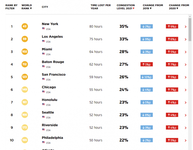 Prema dostupunim podacima vozači u Čikagu su 2021. proveli više od 86 sati u saobraćajnim gužvama što je manje od 115 sati zabeleženih 2019. godine.