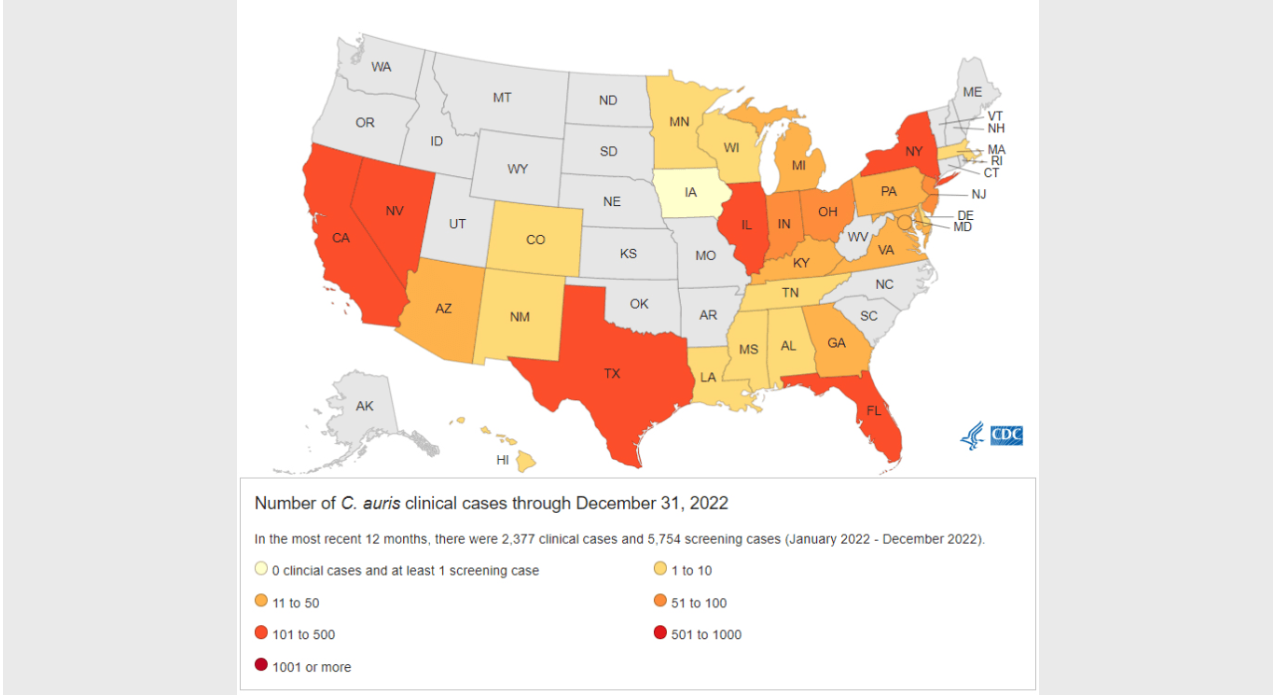 Broj ljudi kojima je dijagnostikovana infekcija i onih za koje je skriningom utvrđeno da nose C. auris raste alarmantnom brzinom otkako je prvi put prijavljen u Sjedinjenim Državama, izvestili su u ponedeljak istraživači iz Centra za kontrolu i prevenciju bolesti (CDC).